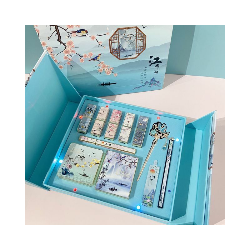 1. Intagliato in stile rossetto:806 # tramonto * 1/808 # Cinabro * 1/809 # concubina Imperiale * 1/812 # Rouge * 1/813 # Splendida * 12.Beauty Cuscino BB Cream: Naturale di Colore * 13.Six-color eyeshadow palette: Cabernet Arancione palette * 14.Double-headed matita per gli occhi: Marrone * 15.Fine intagliato eyeliner: Nero * 1Regalo:Matita per gli occhi di ricambio di base * 2Tornante * 1