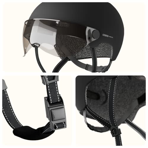 Cosmo Connected Cosmo Fusion, Casco Intelligente Bicicletta e Monopattino con Visiera Unisex Adulto, Nero Opaco, Taglia Unica