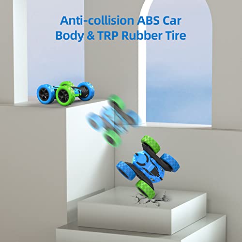 Cosone Macchina Telecomandata per Bambini, Double Sided 360° Rotante 4WD RC Auto con fari 2.4GHz Electric Race Stunt Toy Macchinine Ricaricabili per Ragazzi Ragazze Compleanno (blu verde)