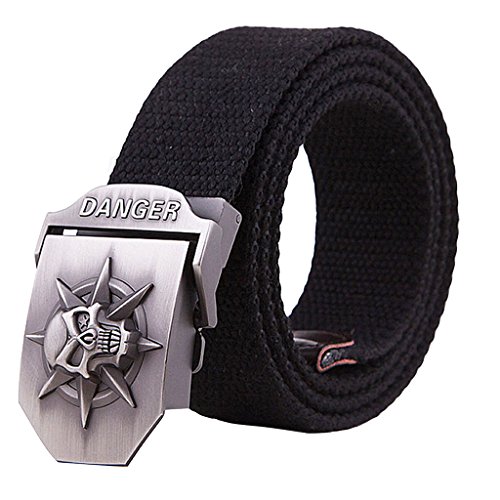 Cosplayitem Uomo Tela Belt Cintura Fibbia Automatica Pericolo Teschio Militare Metallica in acciaio inox Regolabile