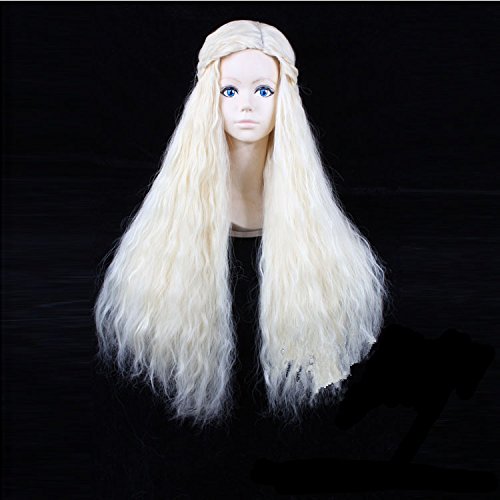 COSPLAZA, parrucca cosplay Game of Thrones, Daenerys Targaryen, khaleesi, barbaro, beige, bionda, trecce, capelli lunghi