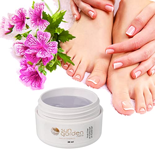 Quando il gel per ricostruzione UV spesso e trasparente polimerizza, si crea uno strato di sudore appiccicoso, che puoi rimuovere perfettamente con il detergente per unghie di Sun Garden Nails. Per un altro strato di gel, ottieni lo strato di sudore come agente legante.