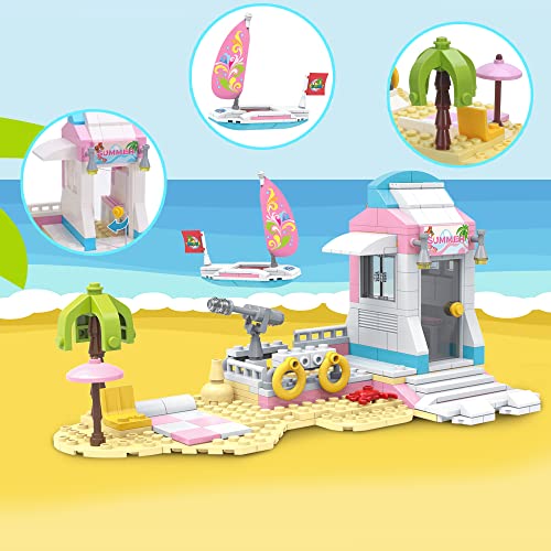 3 in 1: i bambini possono essere trasformati in una nave da crociera + motoscafo + isola + tavola da surf, ricostruire una casa sulla spiaggia + barca a vela + tavola da surf o una torre di salvataggio con un elicottero di soccorso.