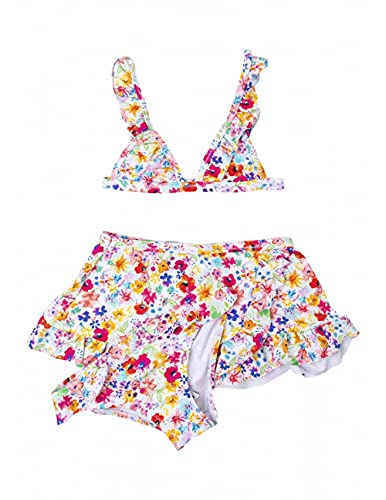 Costume da bagno a 2 pezzi, motivo floreale con pareo multicolore 4 anni