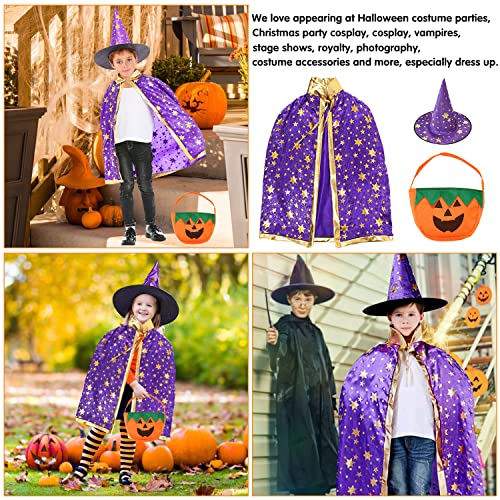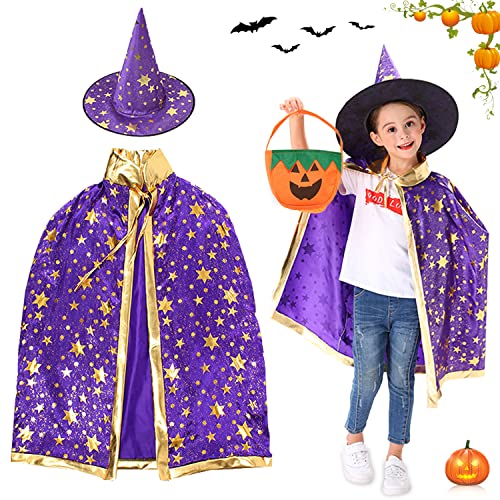 Costume di Halloween per bambini, Costume di Halloween Mantello da Mago per Bambini, mantello Wizard con cappello, zucca Candy Bag, Bambini Halloween Mantello per Bambini Puntelli di Halloween (Viola)