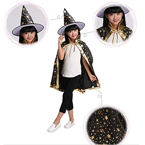 Occasione: il mantello del mago con un cappello assicura che i bambini diventino più dolci di Halloween e danno loro una sensazione unica adatta per feste in costume di Halloween, giochi di ruolo, rivestimento, vampiri, giochi di cosplay, apparizioni sul palcoscenico, festival di fantasmi, fotografia, accessori per costumi, eccetera.