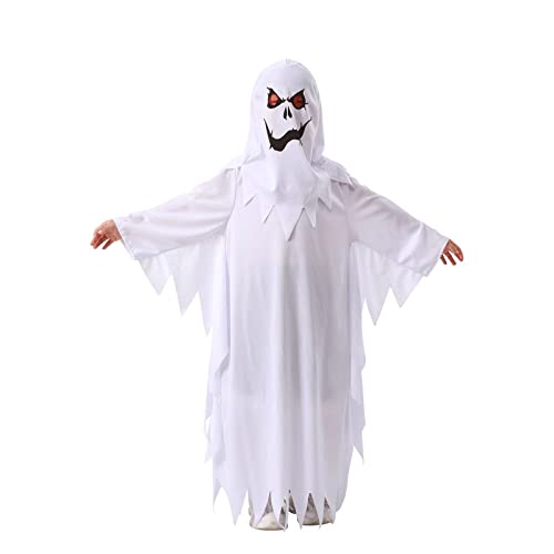 【Costume da fantasma per bambini】: costume di Halloween da fantasma bianco per bambini, composto da roca fantasma, falce e cappuccio con griglia trasparente