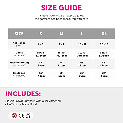 Costume leone per bambini. costume da leone con coda + cappuccio separato con criniera per giornata mondiale del libro/settimana del libro, halloween, e costume personaggio tv e film (piccolo)