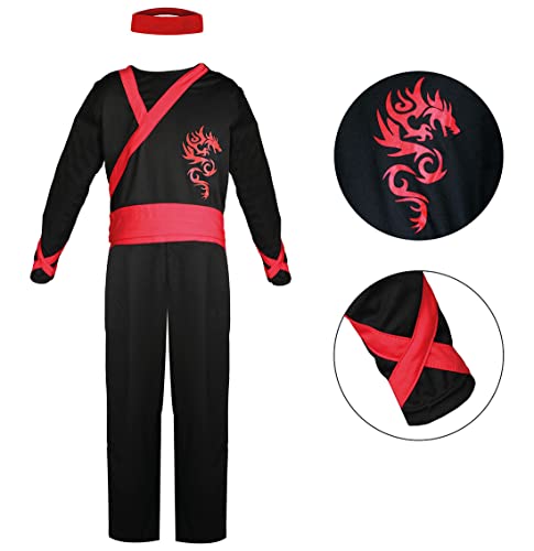 Costume da Ninja per bambini e ragazzo. Costume da Ninja con cappuccio mascherato per HALLOWEEN. Taglia: XL | 12-13 anni