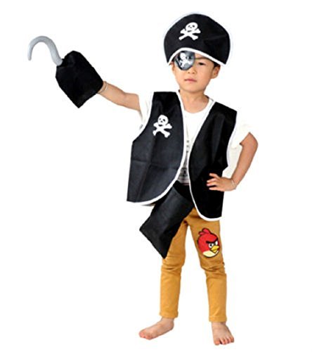 Set per costume da pirata (uncino, gilet, cappello, sacchetto, benda) tg unica - 3-4-5-6 anni. travestimento di carnevale e halloween bambino bimbo (controllare le misure in centimetri della taglia) - hllw