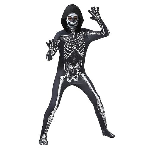 Costume Scheletro Bambino Bambina,Skeleton Vestito Travestimenti per Halloween Carnavale Cosplay Party (S, Nero)
