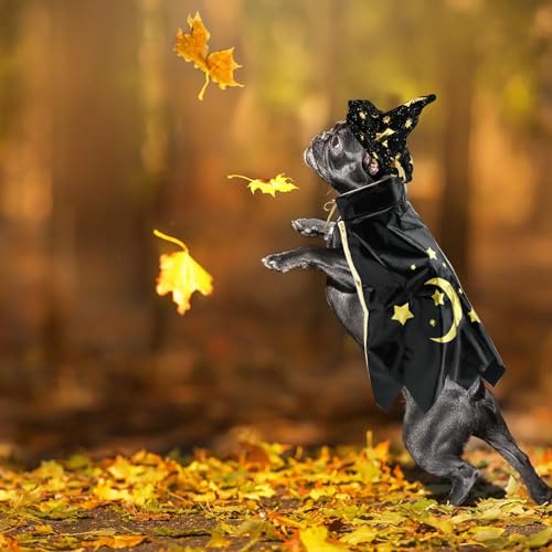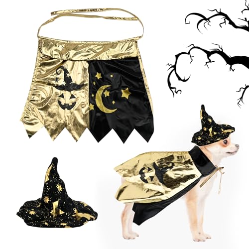 【Costumi di Halloween per Animali Domestici】Il nostro mantello per animali domestici è progettato principalmente in oro e nero, e viene fornito con un cappello, che può rendere gli animali domestici alla moda e non cadrà.Dopo averlo indossato, è come un mago, aggiungendo un tocco più festival alla festa di Halloween e rendere il vostro animale domestico i riflettori della festa.