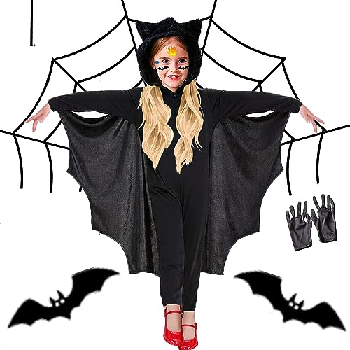 Costumi Da Pipistrello Per Bambini Newtic Costume Da Pipistrello Vestito Pipistrello Bambina Con Mantello e Guanti Abito Cosplay Mantella a Pipistrello Con Cappuccio Per Bambini-S