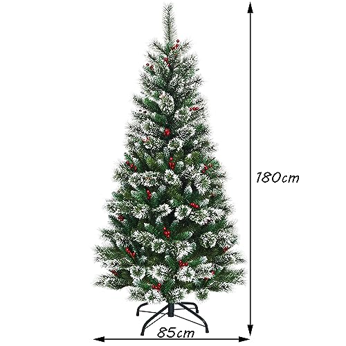 COSTWAY Albero di Natale 150/180/210/240 cm, Albero di Natale Innevato con Rami Folti, Bacche Rosse e Base di Metallo, Albero di Natale Realistico per Casa, Negozio e Ufficio (180cm)