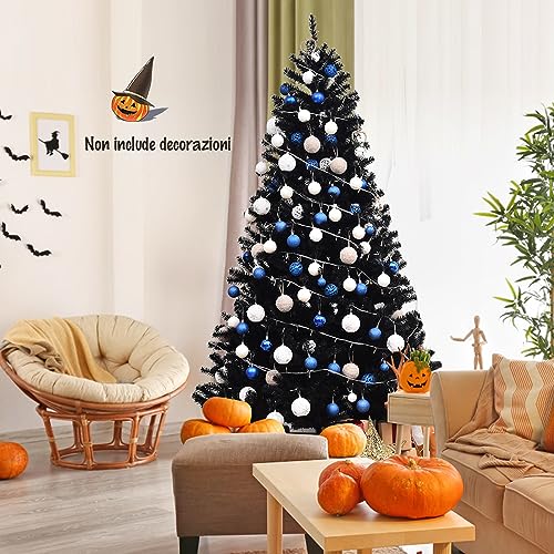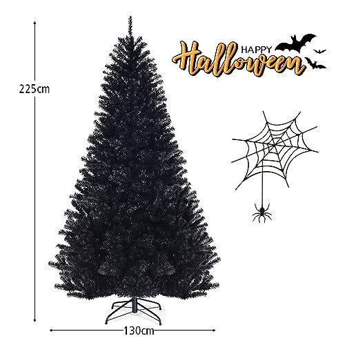 COSTWAY Albero di Natale Nero 180/225 cm, Albero di Natale con 1036/1258 Rami Folti e Base di Metallo con Cuscinetti Antiscivolo, Albero di Natale Realistico per Halloween (225 x Ø131cm)