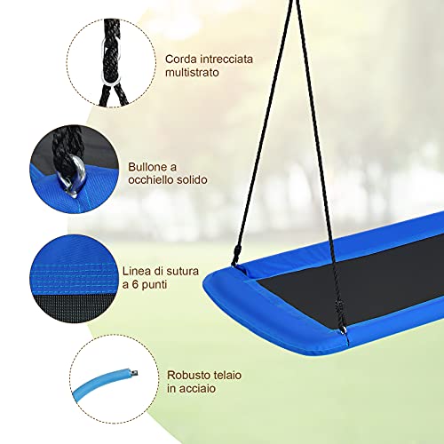 COSTWAY Altalena da Giardino per Bambini, Altalena 150cm con Struttura in Acciaio, Con Corde Regolabili, Adatta per Portico Cortile Giardino (Blu)