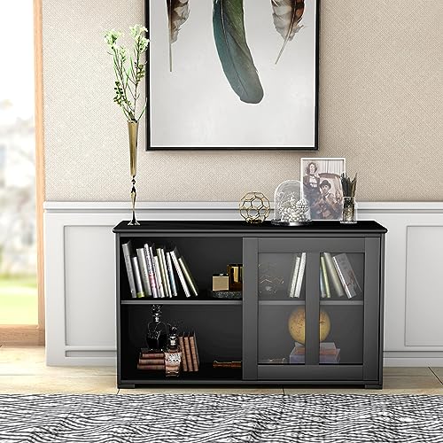 COSTWAY Armadietto da Cucina Mobile Laterale Multiuso con Ante Scorrevoli, in MDF e Vetro, 106,5 x 33 x 62,5 cm (Nero)