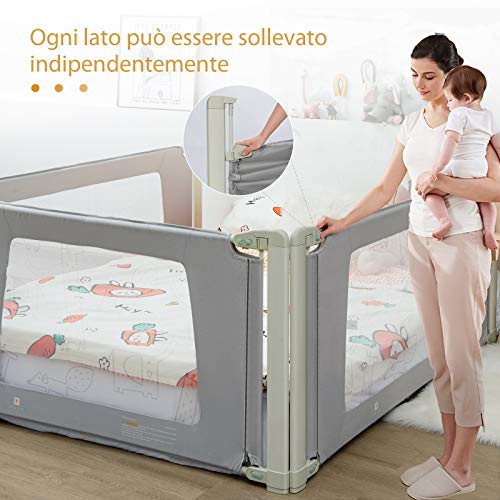 COSTWAY Barriera Letto 150 cm, Sponda di Sicurezza per Bambini, Altezza Regolabile, Spondina Letto Anti Caduta, Adatto a bambini da 0-3 anni (150 cm, Grigio)