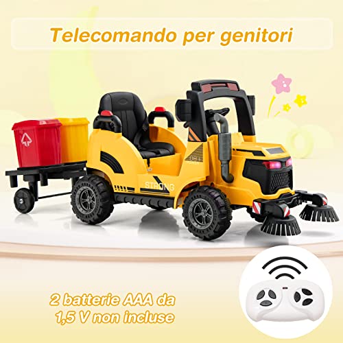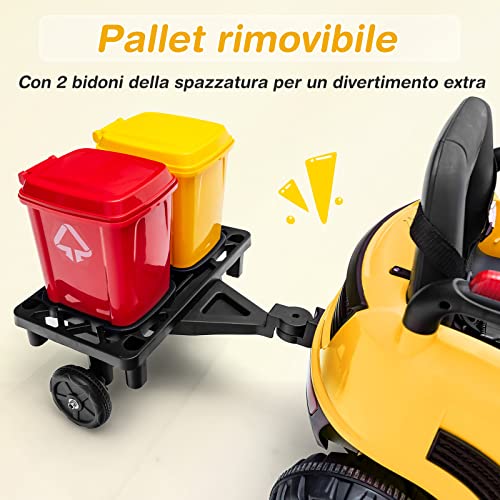 COSTWAY 12V Camion della Spazzatura Cavalcabile per Bambini, Giocattolo Elettrico con 2 Spazzatrici e 2 Cassoni della Spazzatura Rimovibili, con Telecomando e Musica, Regalo per 3-7 Anni