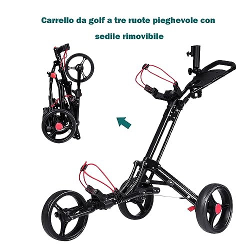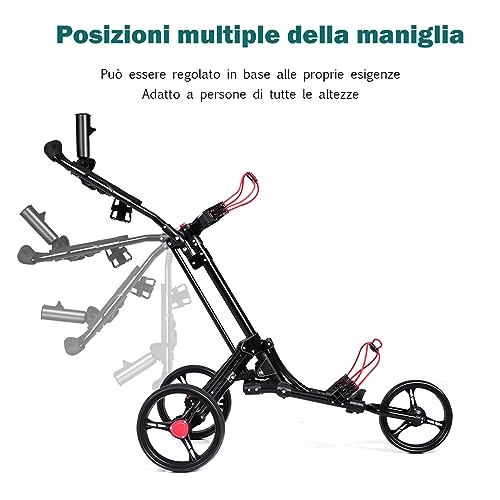 COSTWAY Carrello da Golf Pieghevole con 3 Ruote, Trolley da Golf con Portaombrelli e Porta Bicchiere, Golf Cart Apertura e Chiusura Facile, Nero