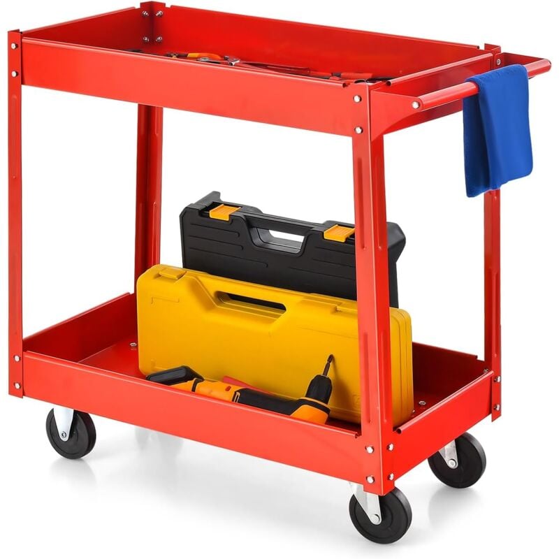 CARATTERISTICHE Aiuta a risolvere molteplici problemi nella vita quotidiana Struttura in metallo per impieghi gravosi che garantisce un'elevata stabilità La superficie spruzzata di plastica previene la ruggine Ogni strato può caricare fino a 50 kg Facile da spostare grazie alle 4 ruote, di cui 2 piroettanti I bordi rialzati proteggono gli oggetti dalla caduta Semplice da assemblare grazie alle chiare istruzioni SPECIFICAZIONI Colore: Rosso/Nero Materiale: Metallo Dimensioni complessive: 85 x 41 x 79 cm (L x P x A) Dimensioni interne di ogni strato: 74,5 x 39 x 9 cm (L x P x A) Peso netto: 9,5 kg Capacità di peso di ogni strato: 50 kg La confezione include: 1 x Carrello di servizio 1 x Istruzioni INFORMAZIO Carrello di Servizio Versatile: Questo efficiente carrello di servizio a 2 livelli è un'aggiunta perfetta alla vostra routine quotidiana. La sua versatilità consente di trasportare utensili, posizionare stoviglie, esporre piante in vaso, posizionare cibo da picnic e così via.