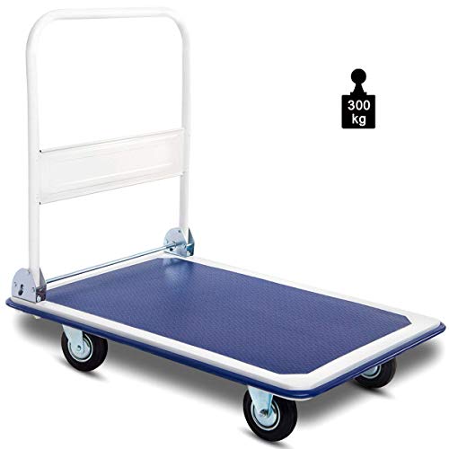 COSTWAY Carrello della Piattaforma, Carrello di Trasporto fino 300 KG, Trasportatore a Mano Pieghevole, Antiscivolo, 90 x 60 cm, Metallo
