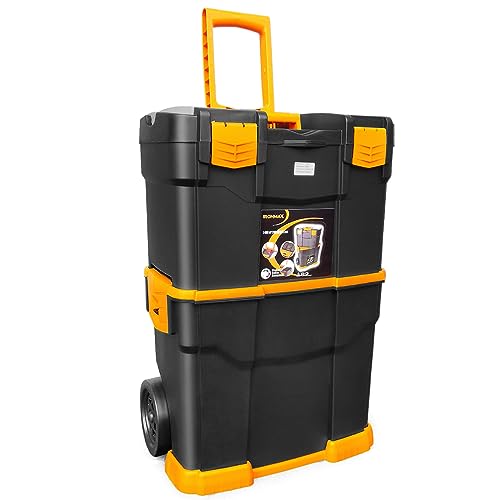 【Portatile】Grazie alle 2 ruote ampie e alla maniglia pieghevole, la cassetta degli attrezzi si sposta facilmente da una parte all'altra risparmiando tempo ed energia. Inoltre, la maniglia fissa nella parte superiore facilita lo spostamento.