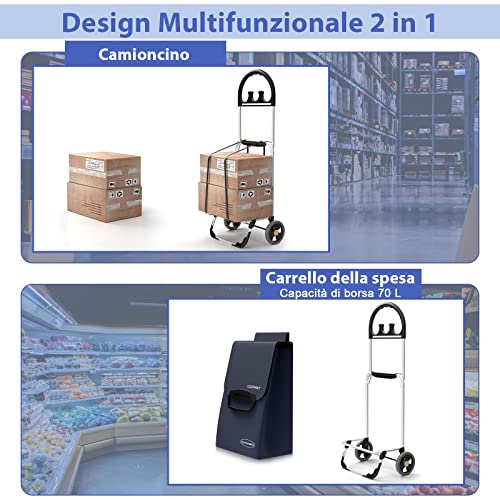 COSTWAY Carrello Portaspesa Pieghevole, Trolley per la Spesa con Borsa Rimovibile, con 2 Ruote Flessibili, 65L, Ideale per Spesa Trasporto Bagagli, Capacità di Carico: 30 kg