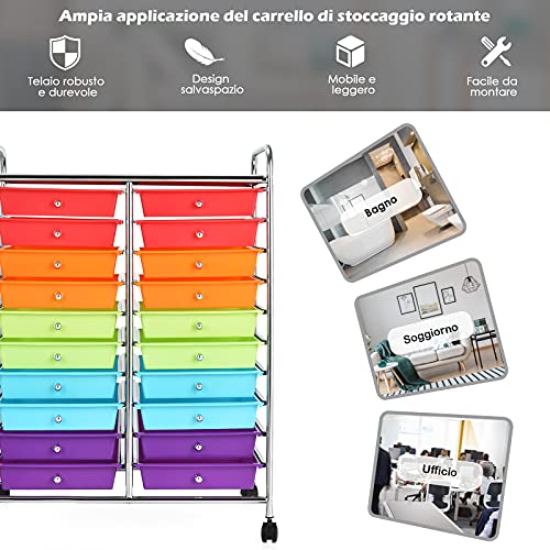 COSTWAY Carrello di Stoccaggio con 20 Cassetti, Carrello portaoggetti con 4 Ruote, Carrello Multiuso per Scuola Ufficio Cucina, 64 x 39 x 88 cm (Colorato)