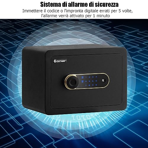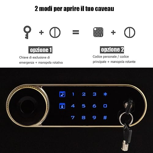 【Protegge bene i tuoi effetti personali】La parte interna della cassaforte ha un tappetino per evitare di graffiare i gioielli. La mensola interna si può rimuovere per avere più spazio. Grazie al design salva spazio, la cassaforte si può usare a casa o in ufficio e conservare documenti importanti o altri oggetti di valore.