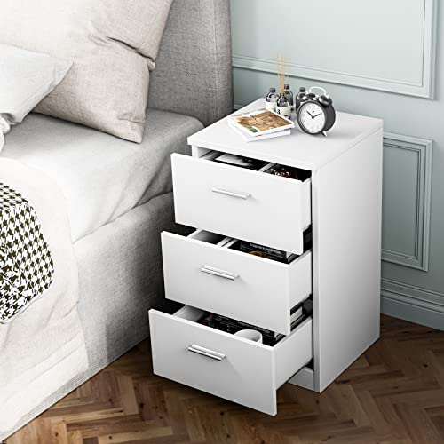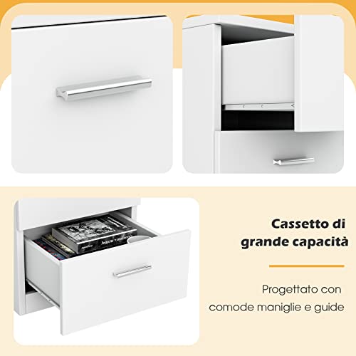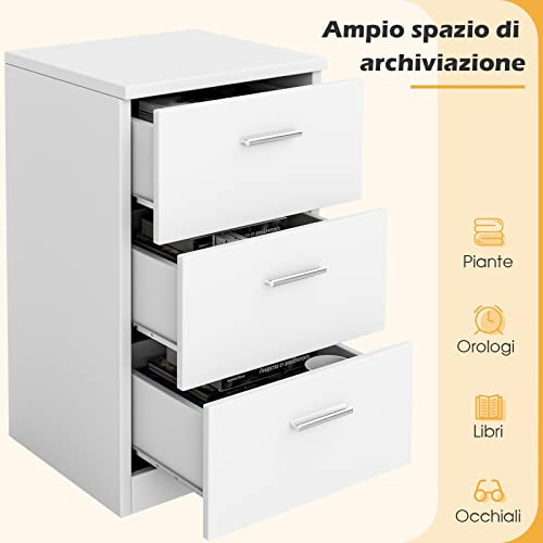 COSTWAY Cassettiera a Tre Cassetti in stile Moderno e Design Lineare Disponibile in colore Bianco o Nero in Legno Truciolato, Adatto per tutti gli ambienti 66 x 38 x 35 cm (Bianco)