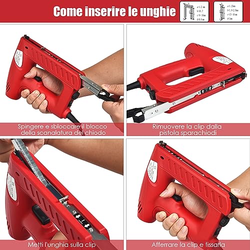 COSTWAY Chiodatrice Elettrica, Include 1200 Punte Metalliche 300 Chiodi, Rosso