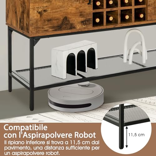 COSTWAY Credenza Industriale per Buffet, Mobile da Cucina con Portabottiglie, Ripiano in Rete Metallica, 2 Ante, Armadietto da Cucina a 2 Livelli per Sala da Pranzo, Soggiorno