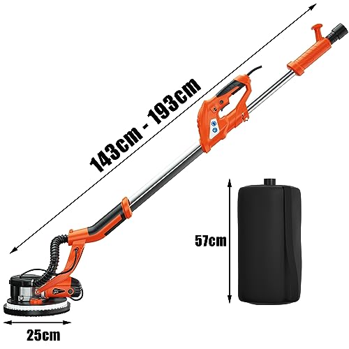 COSTWAY Levigatrice per Muro 750W, Levigatrice a Secco Luce LED e12 Carte Abrasive, Telescopico 193cm, Velocità Variabili, Levigatrice per Cartongesso,