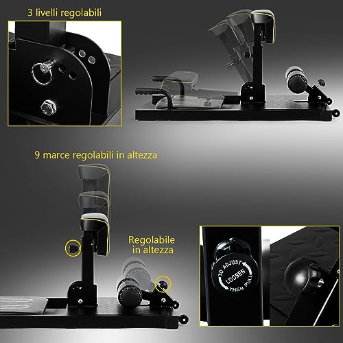【Cuscinetti antiscivolo e maniglia】Ci sono 4 cuscinetti antiscivolo nella parte inferiore per aumentare l'attrito e proteggere il pavimento. Le maniglie antiscivolo e il pedale anteriore evitano di farti scivolare mentre fai i sissy squat, i sit up e le torsioni.