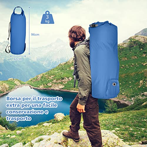 COSTWAY Materassino Campeggio Autogonfiabile, Materassino Gonfiabile Impermeabile Spessore 10cm, Materassino Autogonfiabile con Borsa di Trasporto, per Campeggio, Viaggio, Escursioni (Blu)