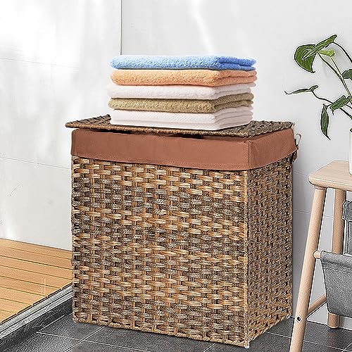 COSTWAY Portabiancheria Cesto per Biancheria, con Coperchio e Maniglie, Sacca Rimovibile, 56,5 x 34 x 60 cm, in Rimini (Marrone)