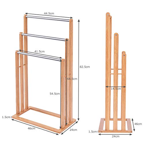 COSTWAY Portasciugamani da terra con 3 aste per Asciugamano, in Acciaio Inox e in Bambù, Colore Naturale