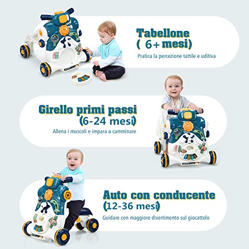 【Design 3 in 1】Comprando il primi passi si hanno 3 funzioni in uno. Non solo esercita la forza muscolare dei bambini ma li fa divertire in vari modi. Seguendo le istruzioni dettagliate, si passa velocemente da primi passi a macchinina.