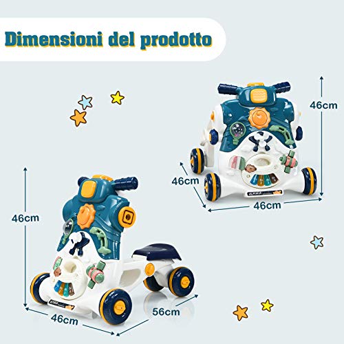 COSTWAY Primi Passi Cavalcabile Spingibile, Giocattolo Educativo con Musica e Luci, 6-36 Mesi (Blu)