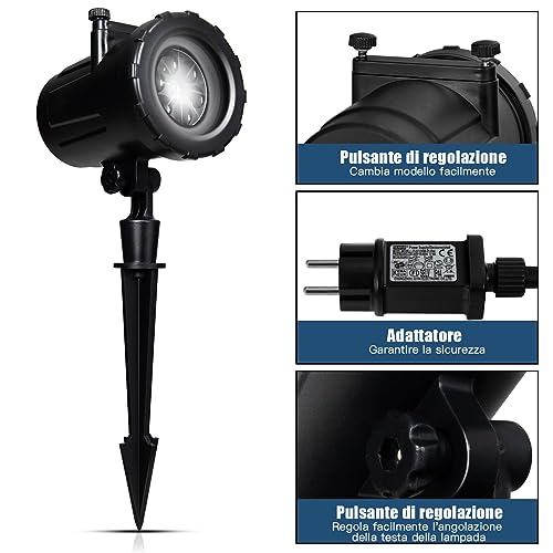 【Ottimi effetti visivi】Il nostro proiettore con fiocchi di neve di Natale usa luci LED che proteggono gli occhi e forniscono un motivo chiaro e luminoso. Con un pulsante, puoi regolare la velocità dei fiocchi di neve in modo che oscillino e che creino una storia innevata.