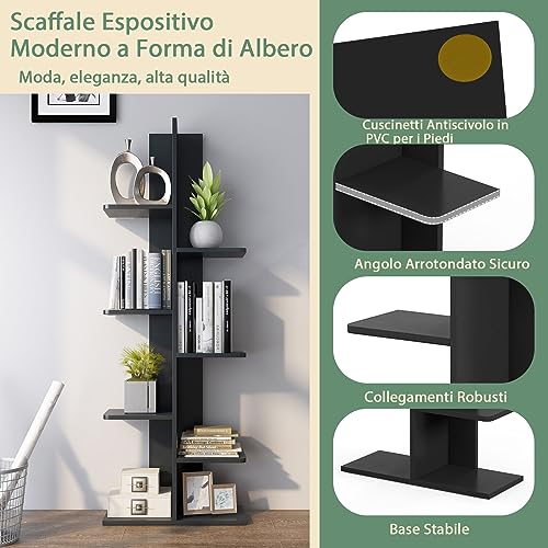 COSTWAY Scaffale in Legno per Libri, 6 Livelli, Libreria da Terra multiuso per Soggirno Ufficio Balcone, Ideale per per Soggirno Ufficio Balcone, 50 x 20 x 141,5 cm (Nero)