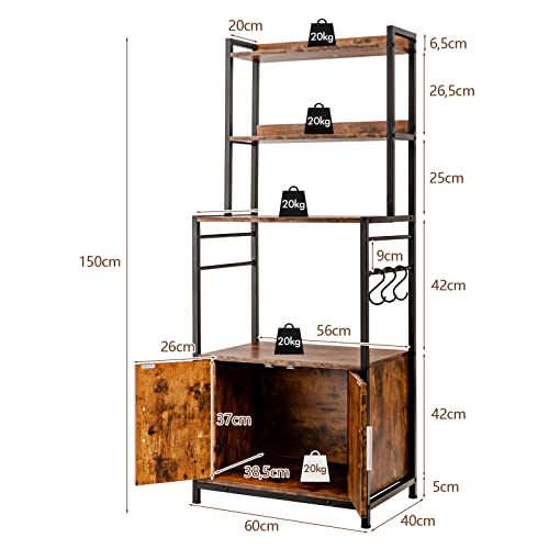 COSTWAY Scaffale con 4 Livelli per Cucina con Armadio e Credenza, Supporto Industriale per Forno Microonde, con Ganci e Piedini Regolabili, Ideale per Cucina e Sala da Pranzo, 60 x 40 x 150 cm