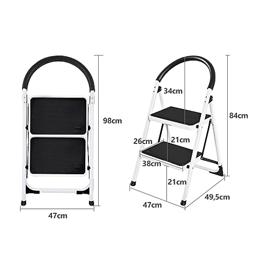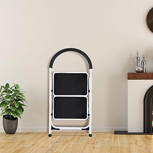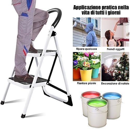 COSTWAY Scaletta Pieghevole in Ferro, Pratica Scaletta Pieghevole, Scaletta Pieghevole Multiuso, Capacità di Carico 150 kg (2 Gradini)