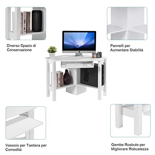 COSTWAY Scrivania Angolare Salvaspazio, Scrivania Computer Moderna in Legno con Vassoio per Tastiera, Scrivania ad Angolo per Ufficio e Casa, 120 x 60 x 77 cm (Bianco)