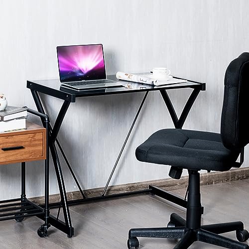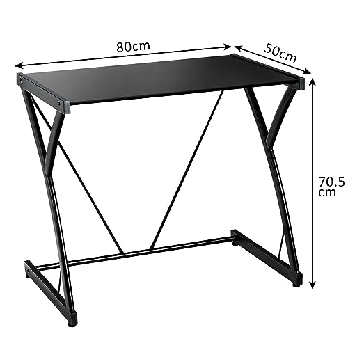 COSTWAY Scrivania per Computer, Scrivania con Superficie in Vetro Temperato, Struttura a Forma di Z e in Ferro, Scrivania Ergonomica con Piedini Regolabili, Postazione di Lavoro per Casa Ufficio, Nero