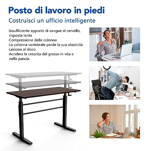 COSTWAY Scrivania Regolabile in Altezza, Scrivania per Computer Laptop con Manovella, Scrivania Moderna in Acciaio e Legno 120 x 60 x 113 cm (Marrone)