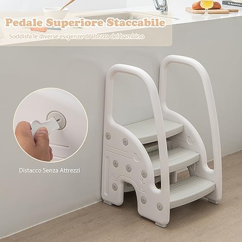 【Sgabello Convertibile per Bambini】Progettato con un gradino superiore rimovibile, questa scaletta a 3 gradini per bambini può adattarsi a diverse altezze. Puoi regolare facilmente l'altezza in base alle esigenze del tuo bambino.