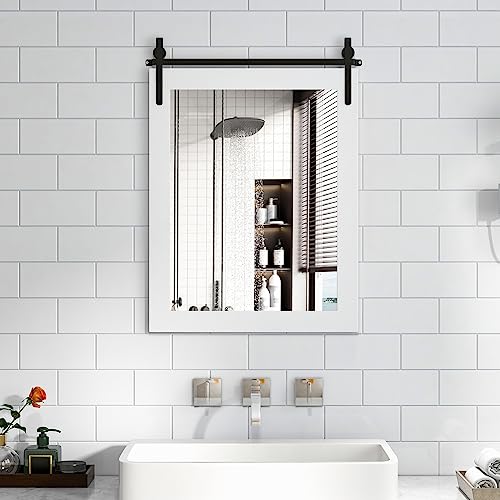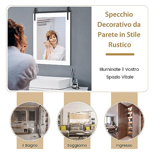 【Stile Rustico e Farmhouse】Caratterizzato da un design ispirato alla porta da granaio, questo specchio con cornice in legno è una combinazione perfetta di stile farmhouse e fascino vintage. In aggiunta, la staffa nera aggiunge un tocco speciale e raffinato allo specchio.