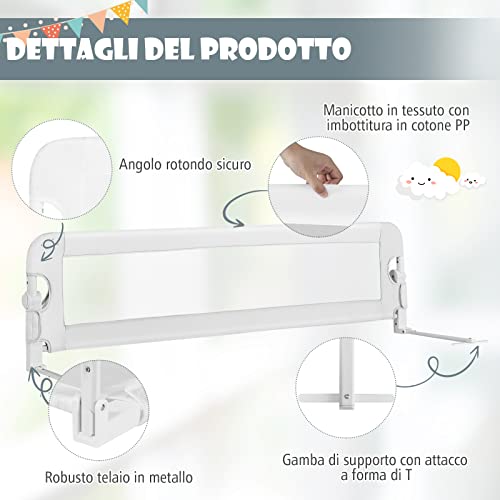 COSTWAY Sponda Letto di Sicurezza per Bambini, Barriera Letto Pieghevole e Portatile, con Cinghie, Lunghezza Regolabile: 95-190 cm (Bianco)